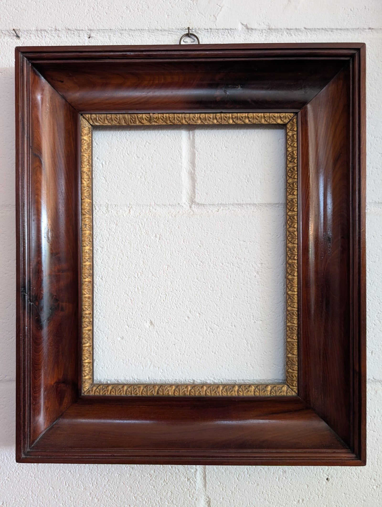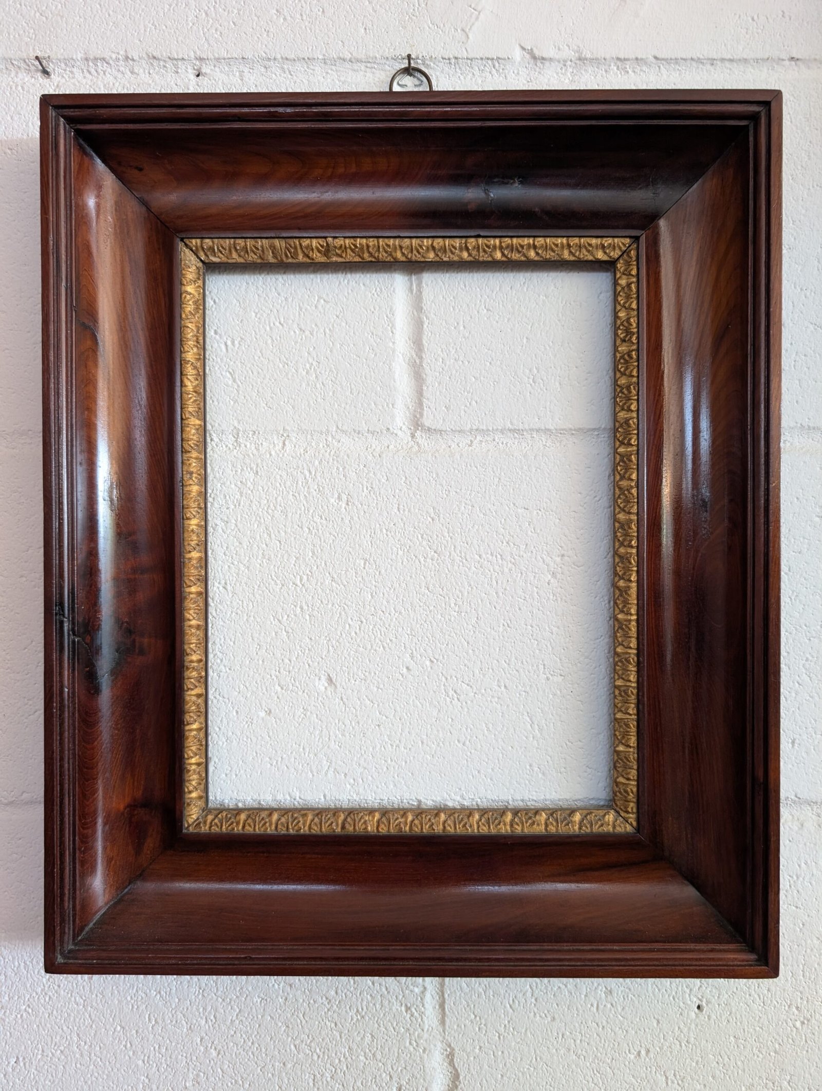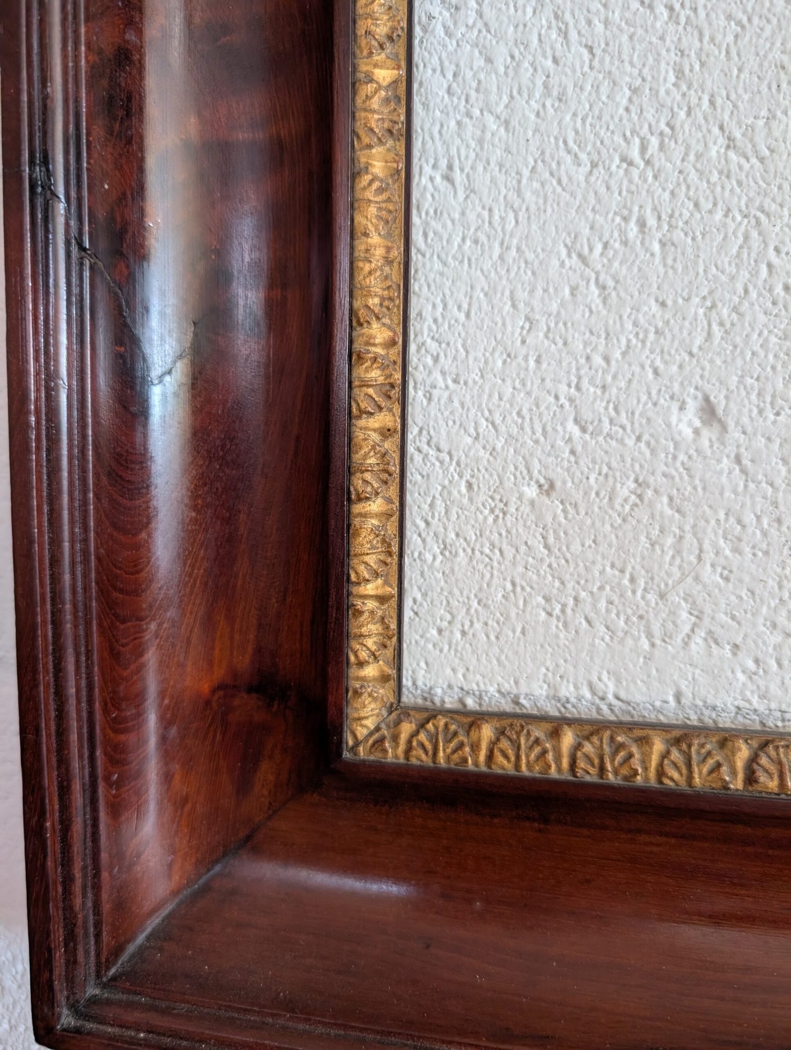Si distingue per il bel contrasto tra il mogano lucidato e la doratura raffinata, che mette in risalto il profilo ampio e imponente. Questa cornice del XIX secolo è ideale per incorniciare ritratti, dipinti ad olio o opere su carta dell’epoca, ma può essere apprezzata anche come oggetto decorativo da collezione.