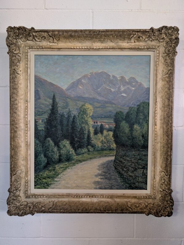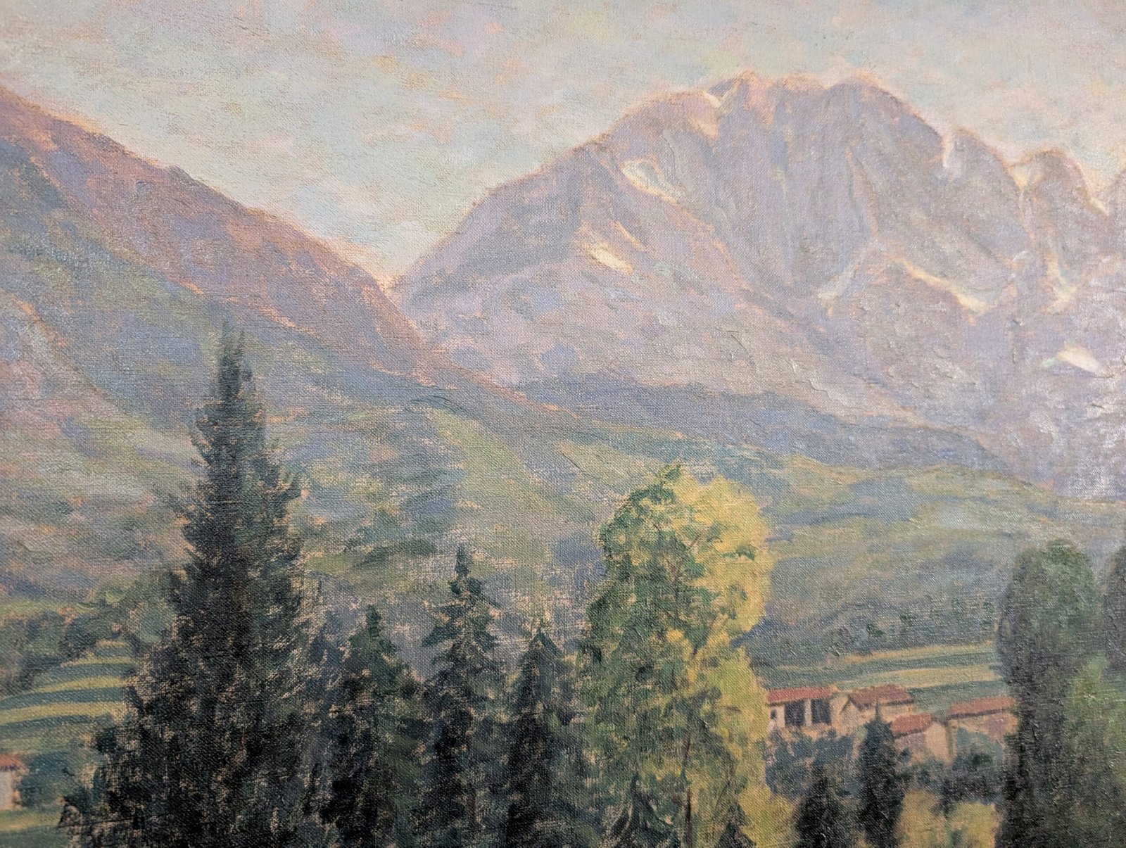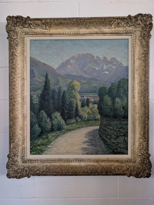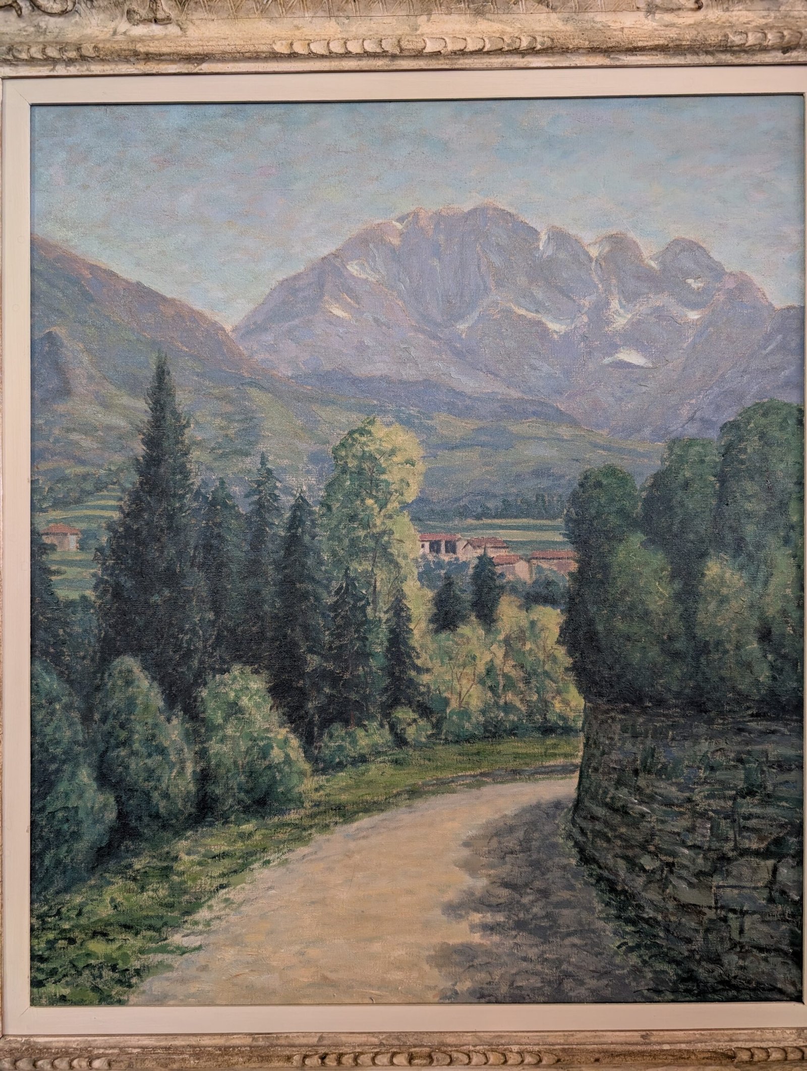 Dipinto raffigurante un paesaggio alpino con veduta della Presolana, montagna situata in provincia di Bergamo.